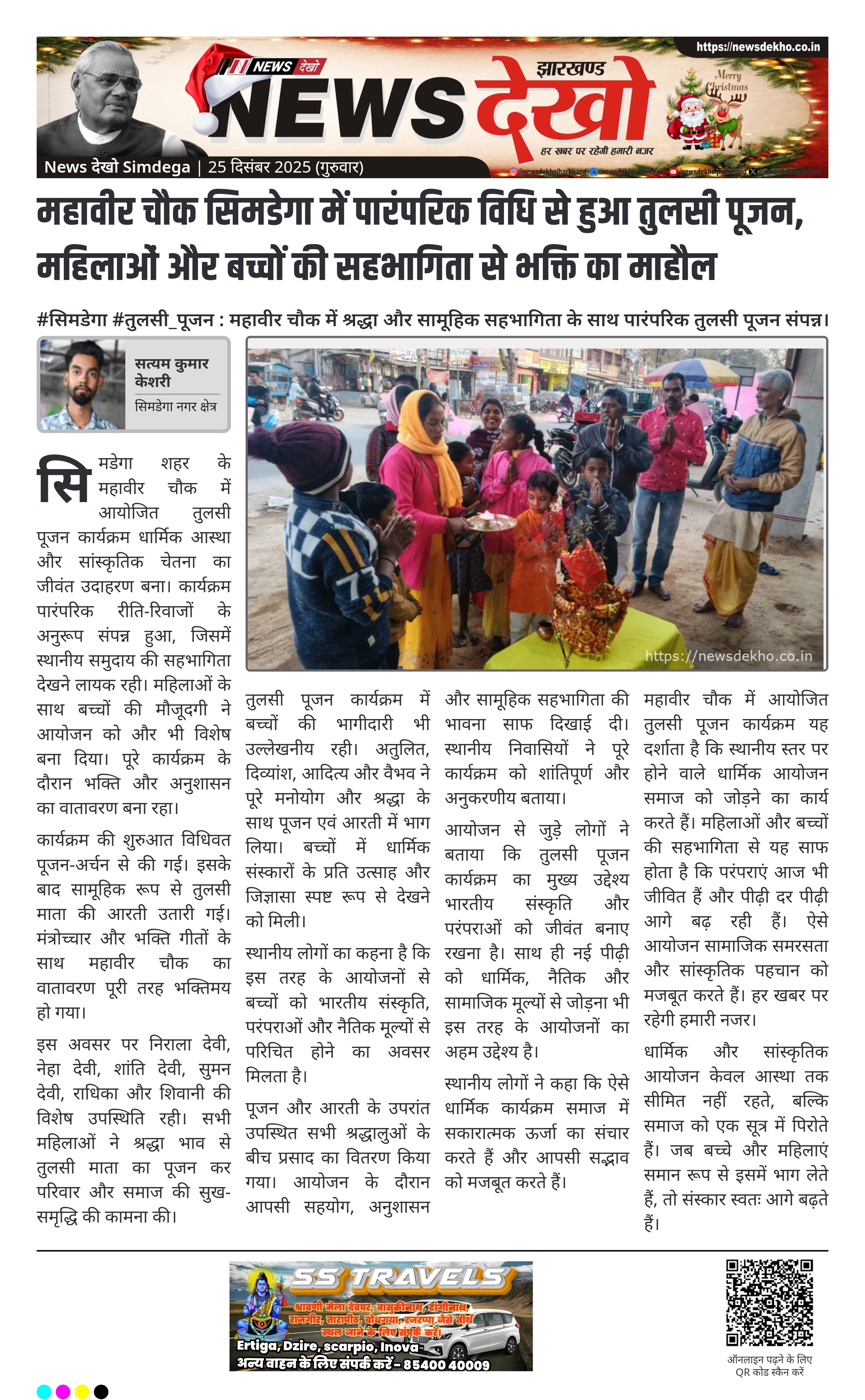 - महावीर चौक, सिमडेगा में पारंपरिक तुलसी पूजन कार्यक्रम आयोजित।