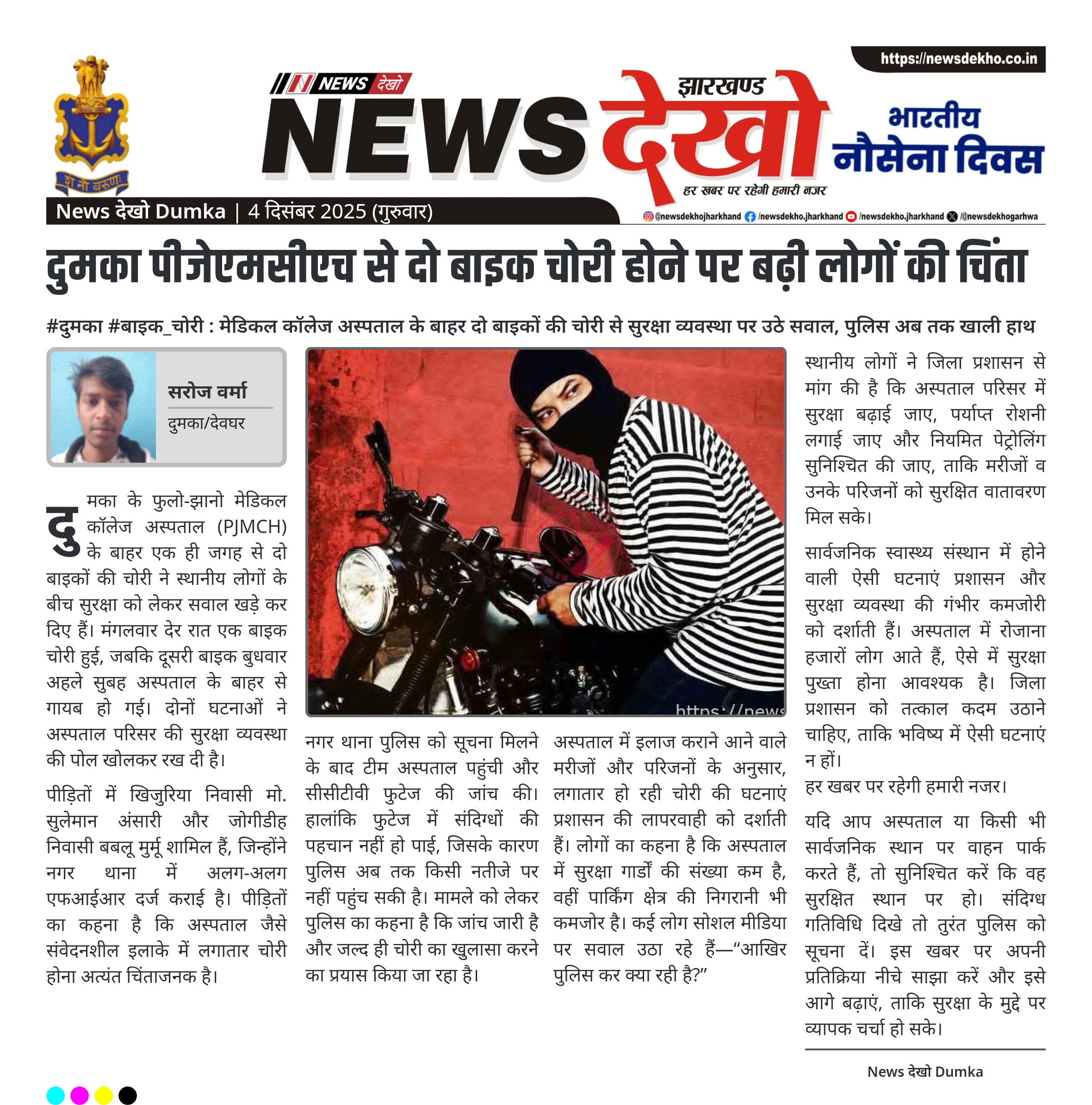 #दुमका #बाइक_चोरी : मेडिकल कॉलेज अस्पताल के बाहर दो बाइकों की चोरी से सुरक्षा व्यवस्था पर उठे सवाल, पुलिस अब तक खाली हाथ