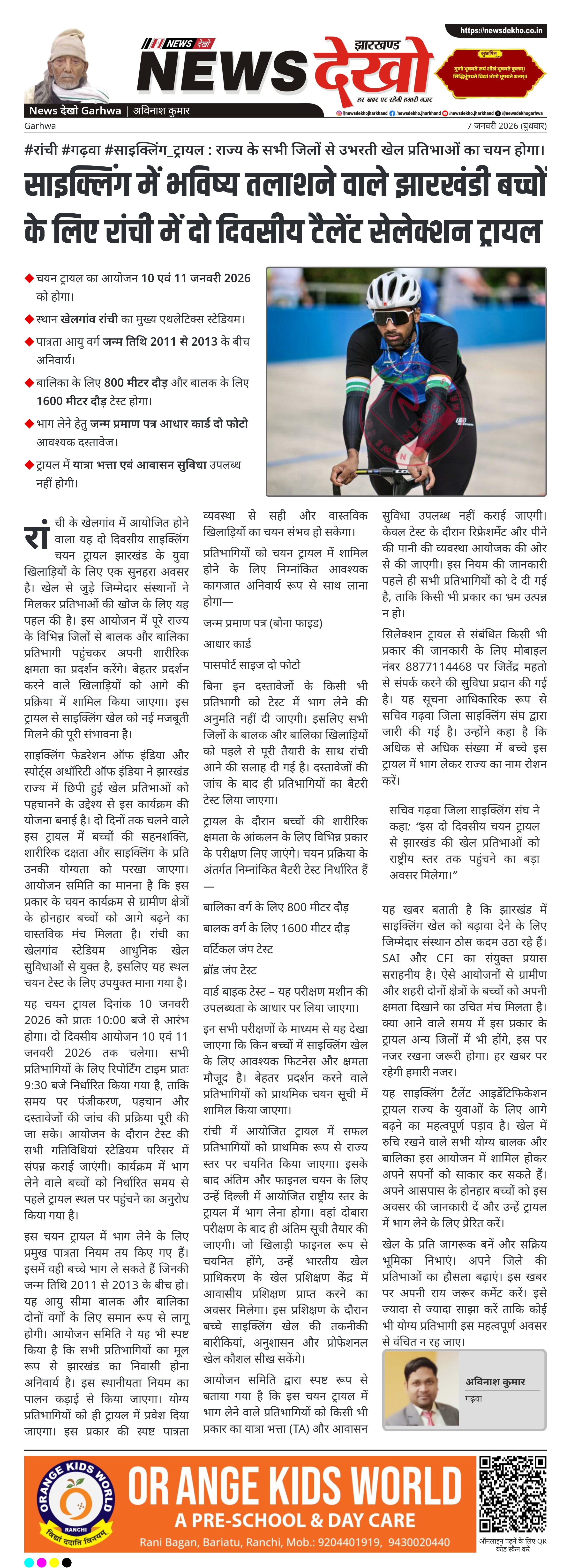 #रांची #गढ़वा #साइक्लिंग_ट्रायल : राज्य के सभी जिलों से उभरती खेल प्रतिभाओं का चयन होगा।