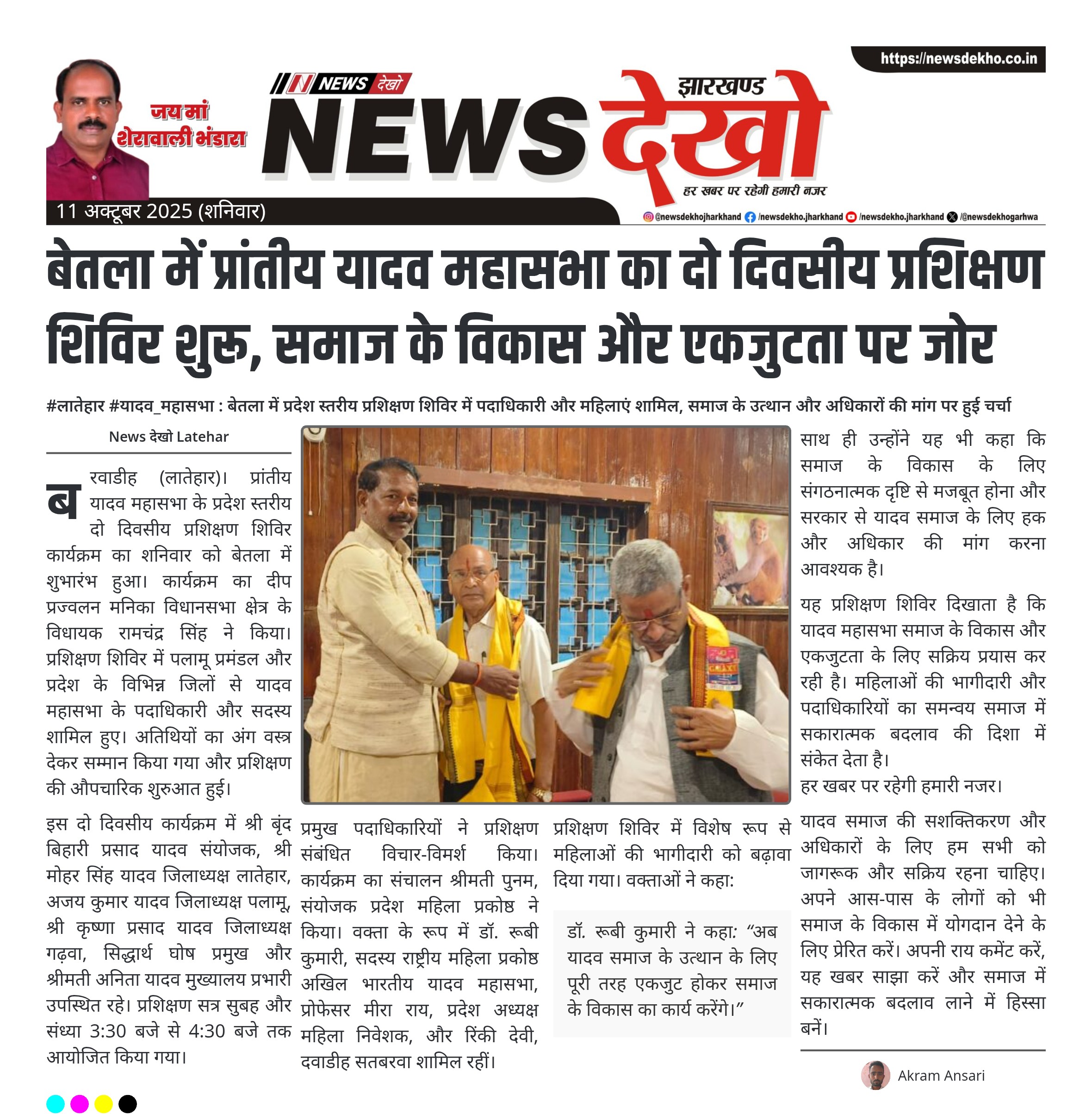 - बेतला में प्रांतीय यादव महासभा का दो दिवसीय प्रशिक्षण शिविर शनिवार से शुरू।