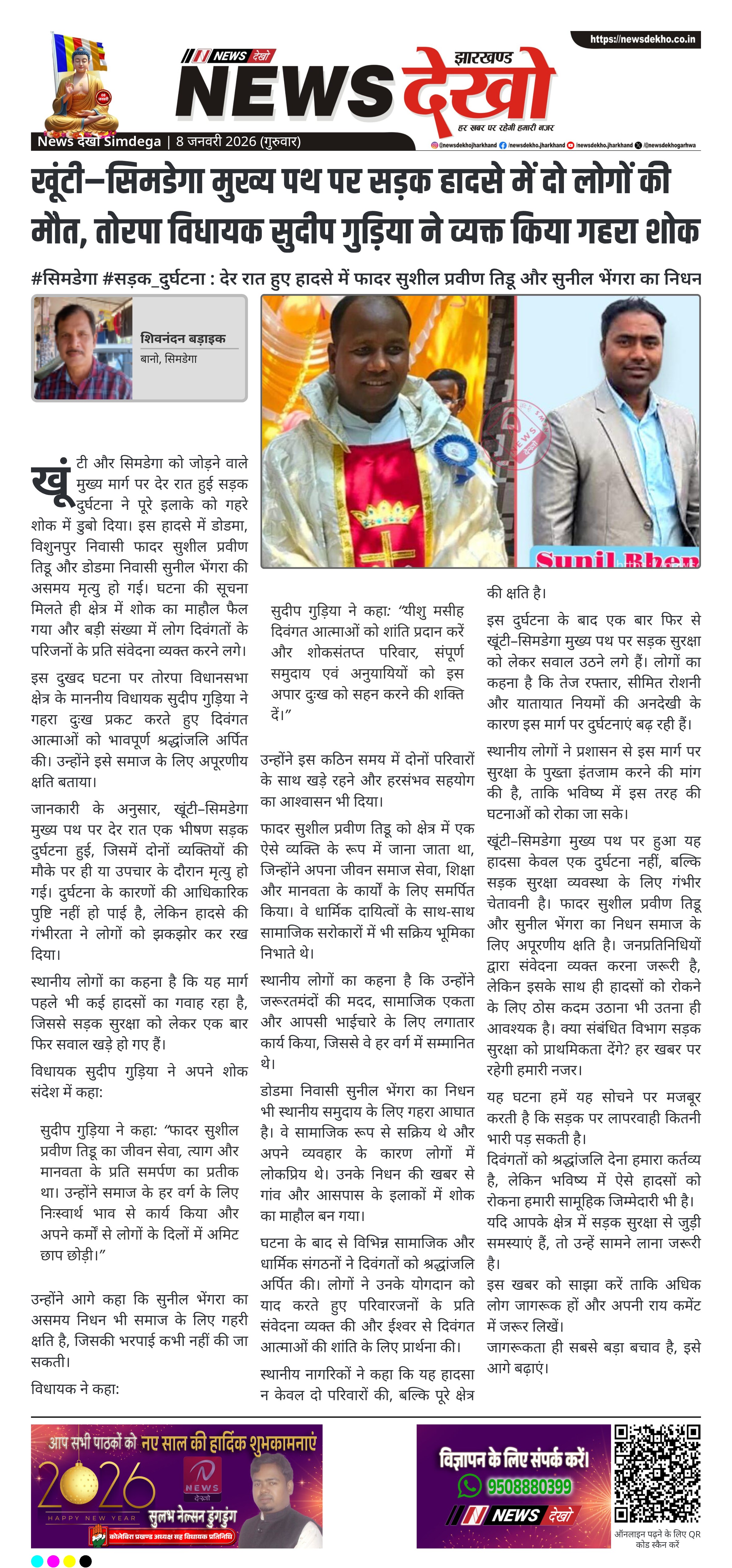 • फादर सुशील प्रवीण तिडू और सुनील भेंगरा का आकस्मिक निधन।
