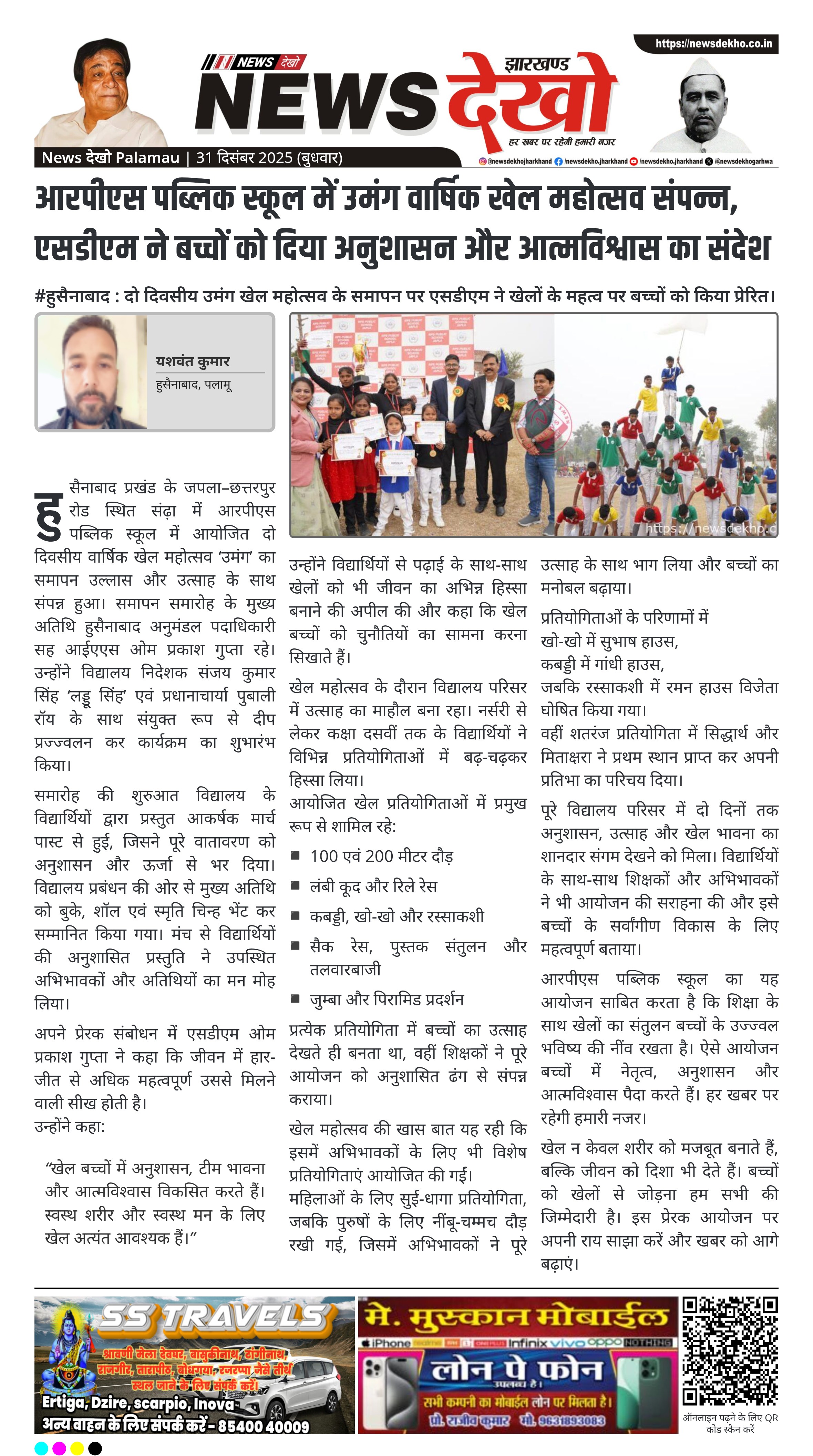 आरपीएस पब्लिक स्कूल का यह आयोजन साबित करता है कि शिक्षा के साथ खेलों का संतुलन बच्चों के उज्ज्वल भविष्य की नींव रखता है। ऐसे आयोजन बच्चों में नेतृत्व, अनुशासन और आत्मविश्वास पैदा करते हैं। हर खबर पर रहेगी हमारी नजर।