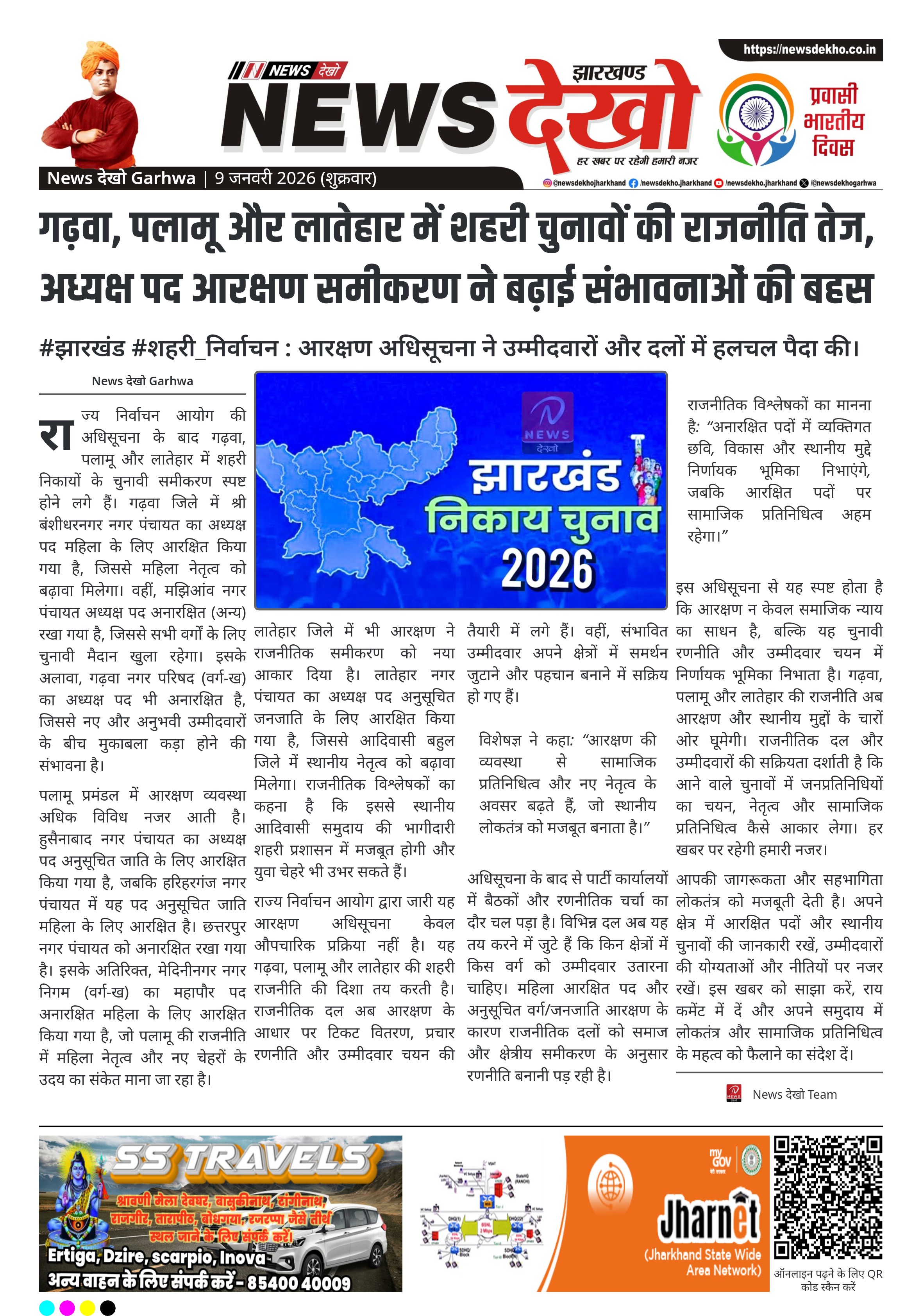 राज्य निर्वाचन आयोग द्वारा जारी यह आरक्षण अधिसूचना केवल औपचारिक प्रक्रिया नहीं है। यह गढ़वा, पलामू और लातेहार की शहरी राजनीति की दिशा तय करती है। राजनीतिक दल अब आरक्षण के आधार पर टिकट वितरण, प्रचार रणनीति और उम्मीदवार चयन की तैयारी में लगे हैं। वहीं, संभावित उम्मीदवार अपने क्षेत्रों में समर्थन जुटाने और पहचान बनाने में सक्रिय हो गए हैं।