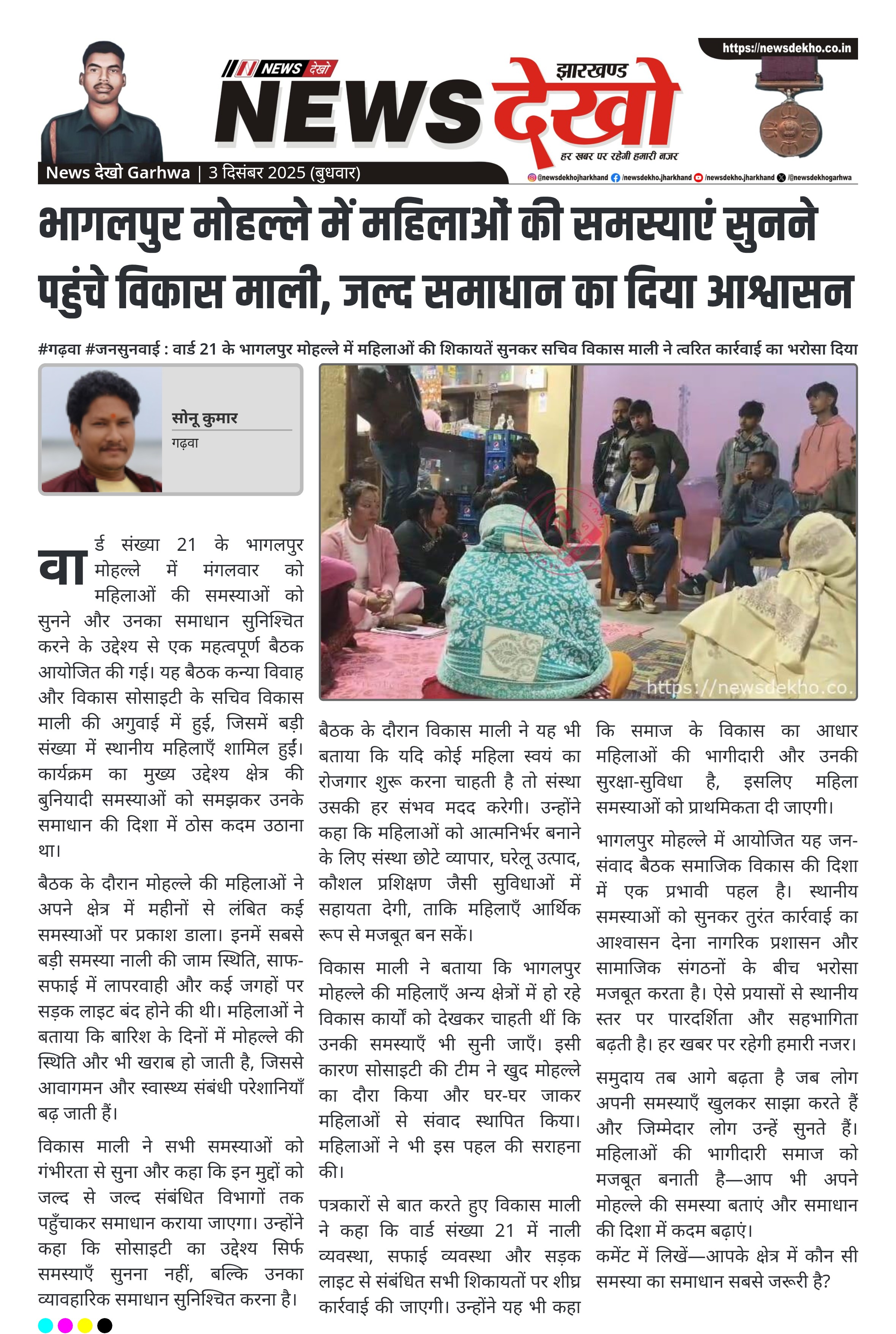 #गढ़वा #जनसुनवाई : वार्ड 21 के भागलपुर मोहल्ले में महिलाओं की शिकायतें सुनकर सचिव विकास माली ने त्वरित कार्रवाई का भरोसा दिया