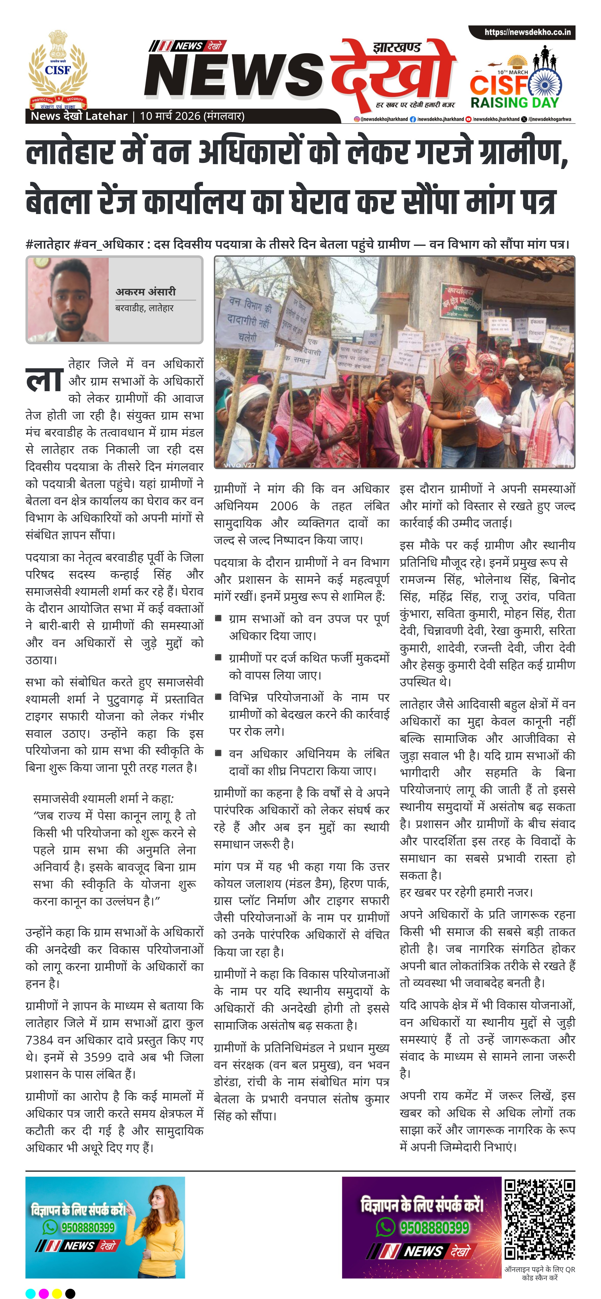 लातेहार जैसे आदिवासी बहुल क्षेत्रों में वन अधिकारों का मुद्दा केवल कानूनी नहीं बल्कि सामाजिक और आजीविका से जुड़ा सवाल भी है। यदि ग्राम सभाओं की भागीदारी और सहमति के बिना परियोजनाएं लागू की जाती हैं तो इससे स्थानीय समुदायों में असंतोष बढ़ सकता है। प्रशासन और ग्रामीणों के बीच संवाद और पारदर्शिता इस तरह के विवादों के समाधान का सबसे प्रभावी रास्ता हो सकता है।