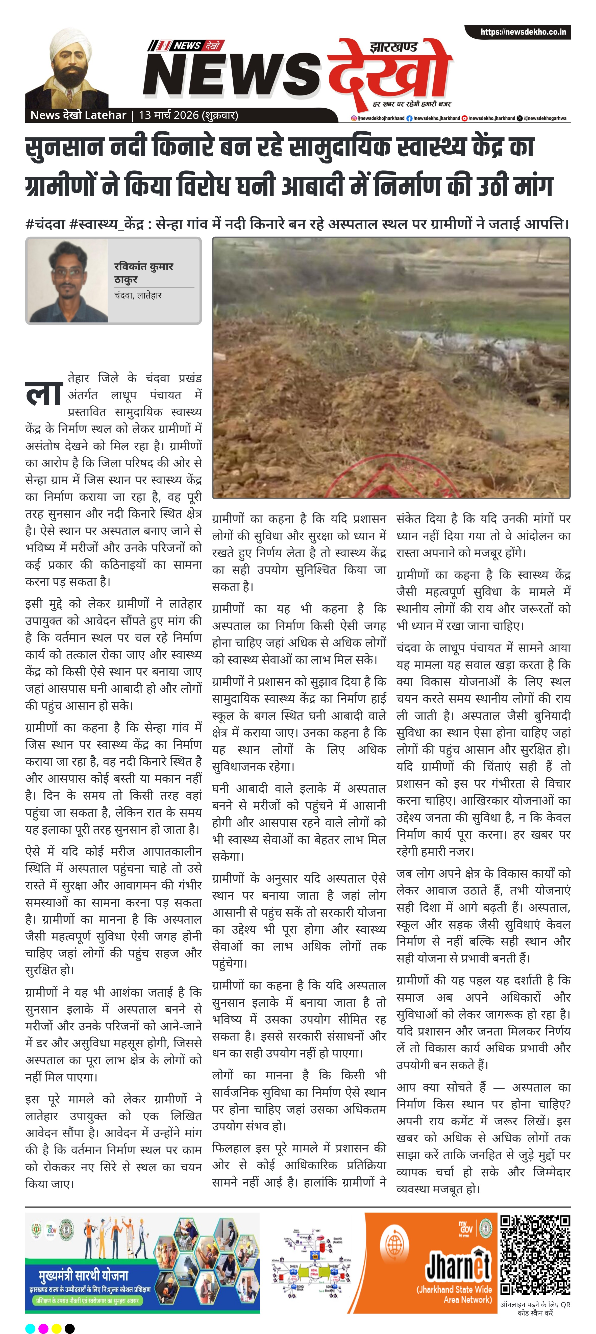 #चंदवा #स्वास्थ्य_केंद्र : सेन्हा गांव में नदी किनारे बन रहे अस्पताल स्थल पर ग्रामीणों ने जताई आपत्ति।