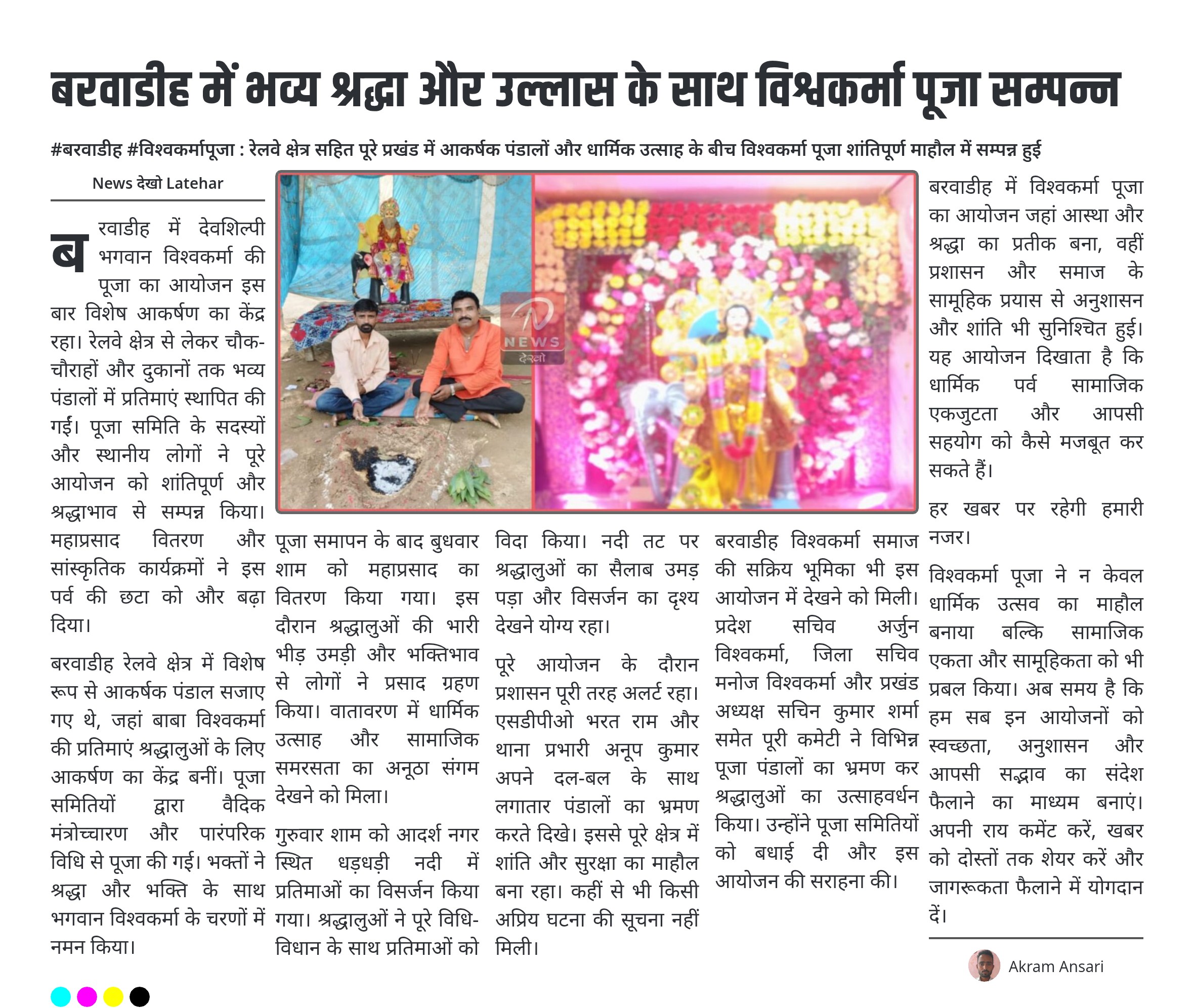 बरवाडीह में भव्य श्रद्धा और उल्लास के साथ विश्वकर्मा पूजा सम्पन्न