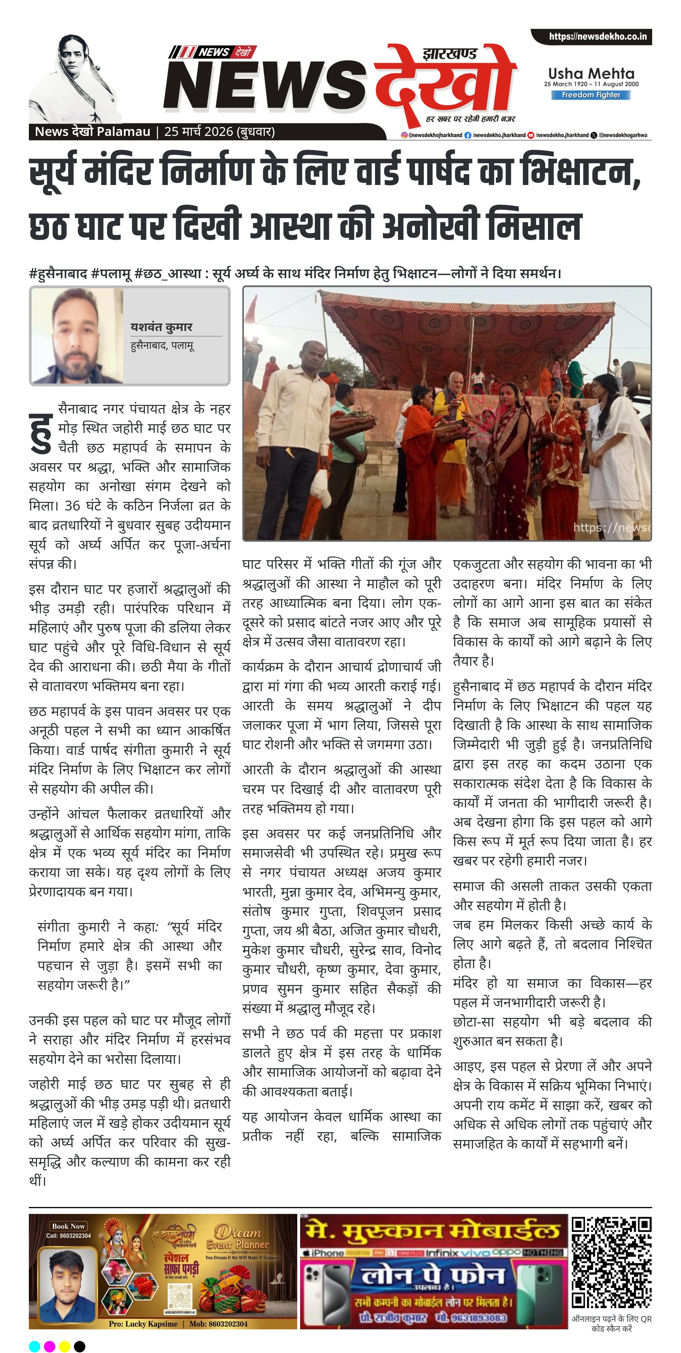 उन्होंने आंचल फैलाकर व्रतधारियों और श्रद्धालुओं से आर्थिक सहयोग मांगा, ताकि क्षेत्र में एक भव्य सूर्य मंदिर का निर्माण कराया जा सके। यह दृश्य लोगों के लिए प्रेरणादायक बन गया।