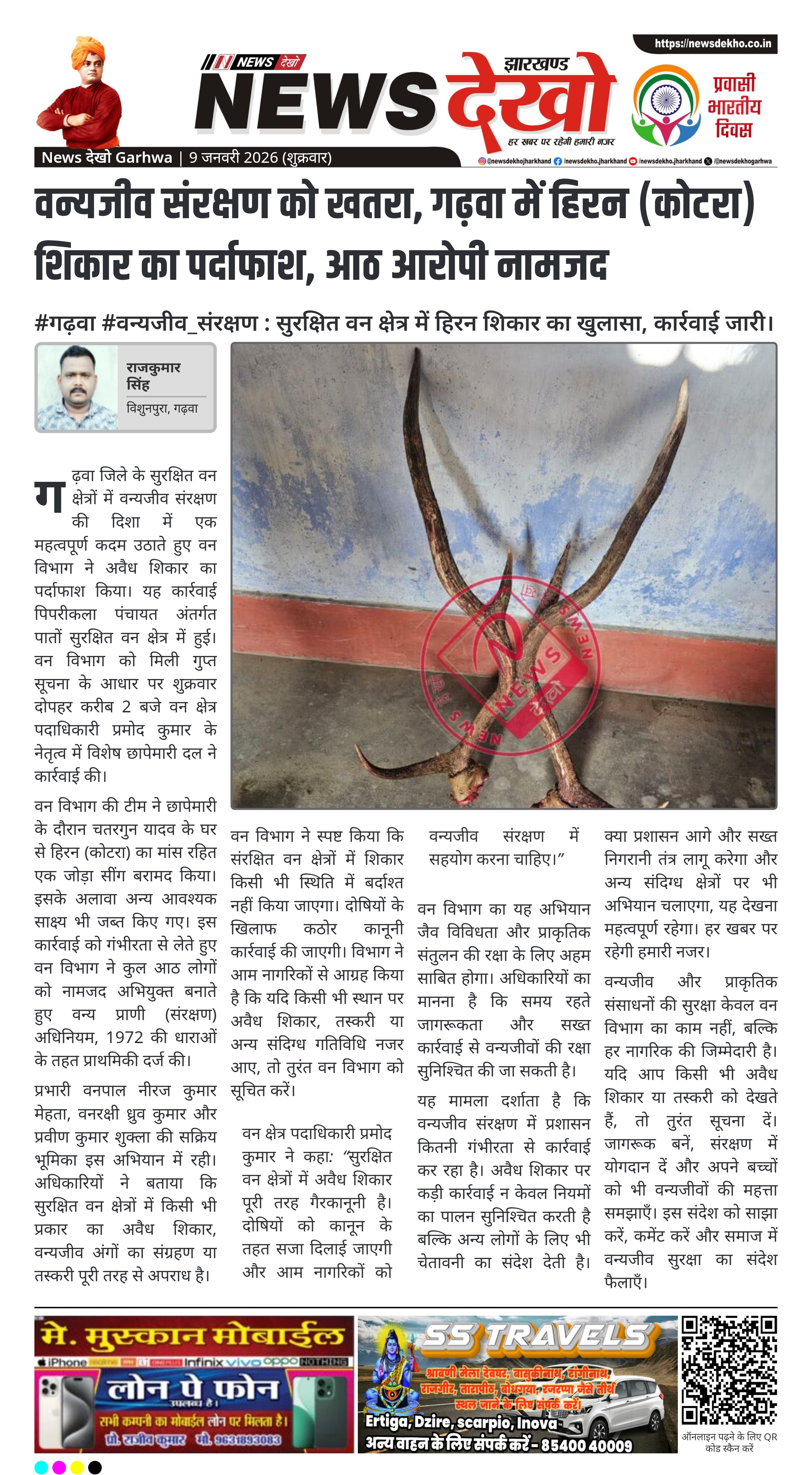 #गढ़वा #वन्यजीव_संरक्षण : सुरक्षित वन क्षेत्र में हिरन शिकार का खुलासा, कार्रवाई जारी।