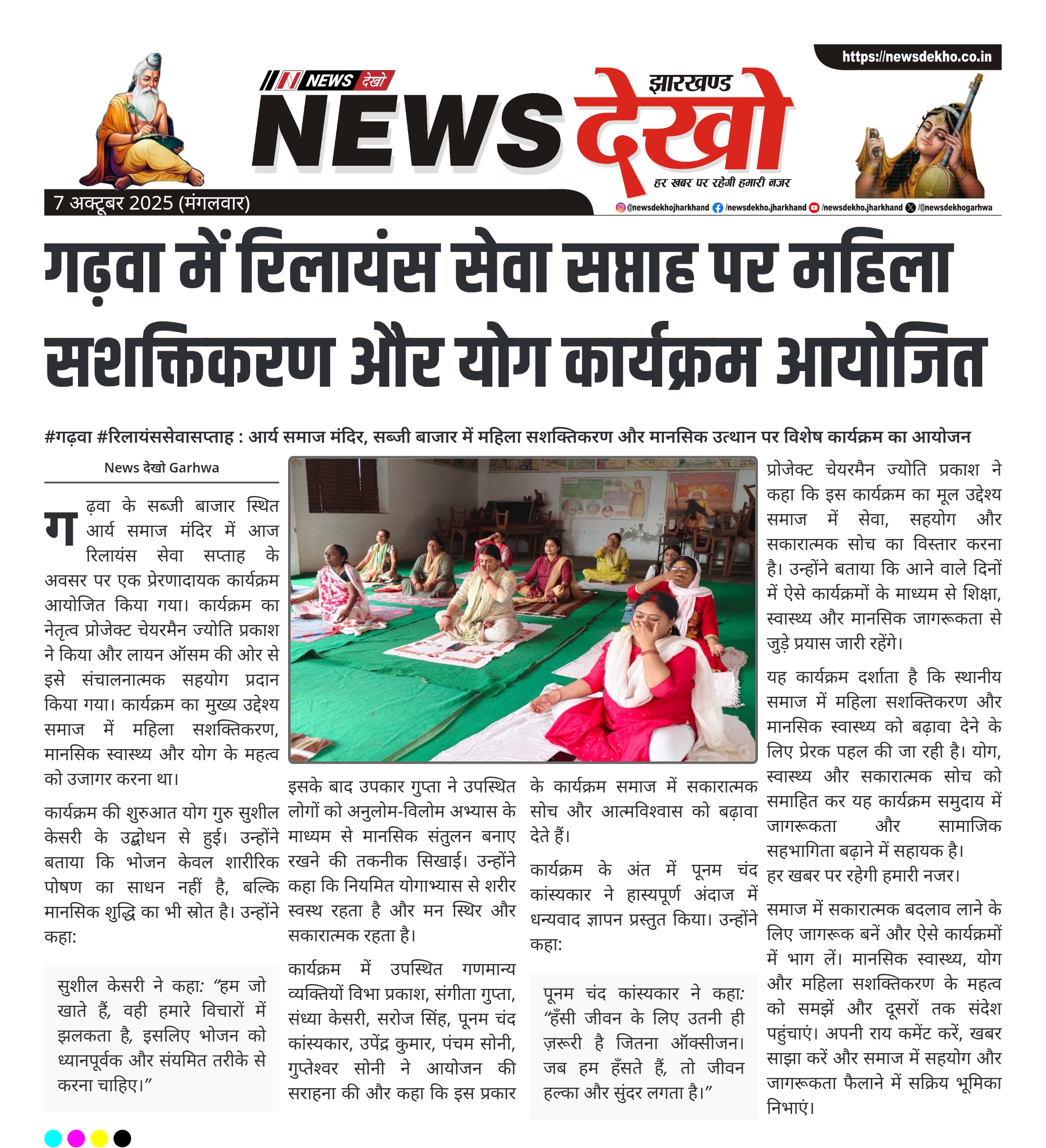 - रिलायंस सेवा सप्ताह के अवसर पर गढ़वा में महिला सशक्तिकरण एवं योग कार्यक्रम का आयोजन।