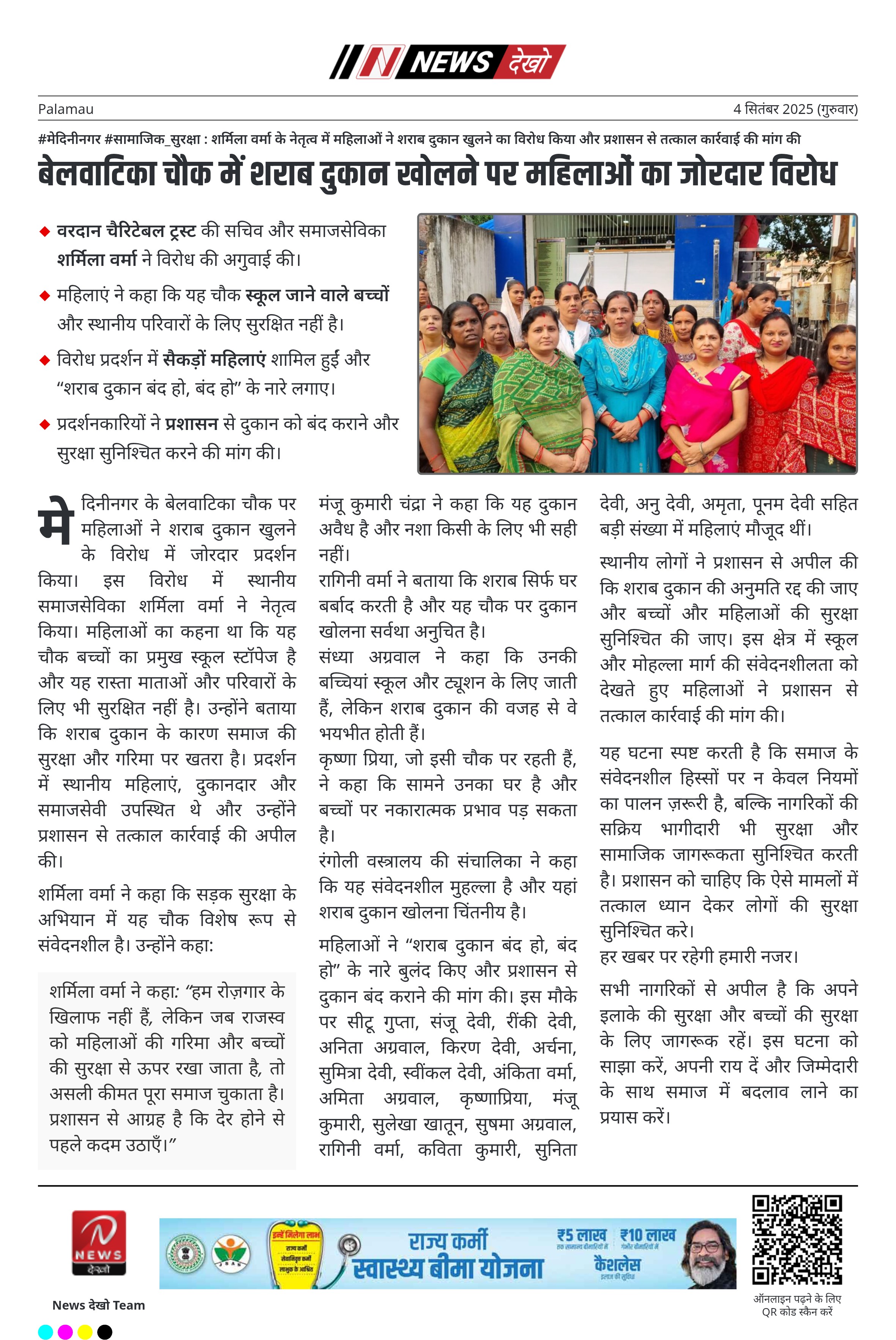 शर्मिला वर्मा ने कहा: “हम रोज़गार के खिलाफ नहीं हैं, लेकिन जब राजस्व को महिलाओं की गरिमा और बच्चों की सुरक्षा से ऊपर रखा जाता है, तो असली कीमत पूरा समाज चुकाता है। प्रशासन से आग्रह है कि देर होने से पहले कदम उठाएँ।”