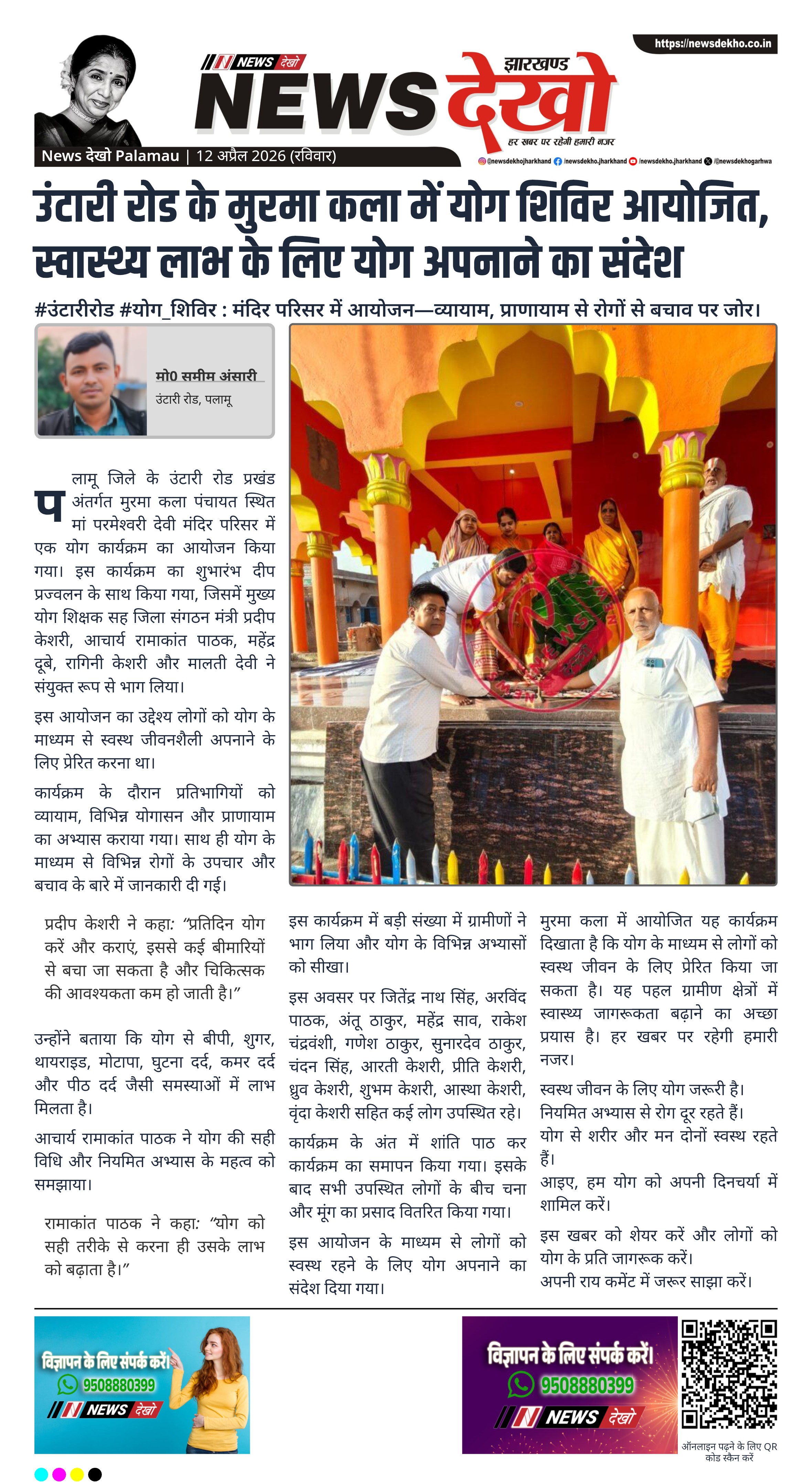 मुरमा कला में आयोजित यह कार्यक्रम दिखाता है कि योग के माध्यम से लोगों को स्वस्थ जीवन के लिए प्रेरित किया जा सकता है। यह पहल ग्रामीण क्षेत्रों में स्वास्थ्य जागरूकता बढ़ाने का अच्छा प्रयास है। हर खबर पर रहेगी हमारी नजर।