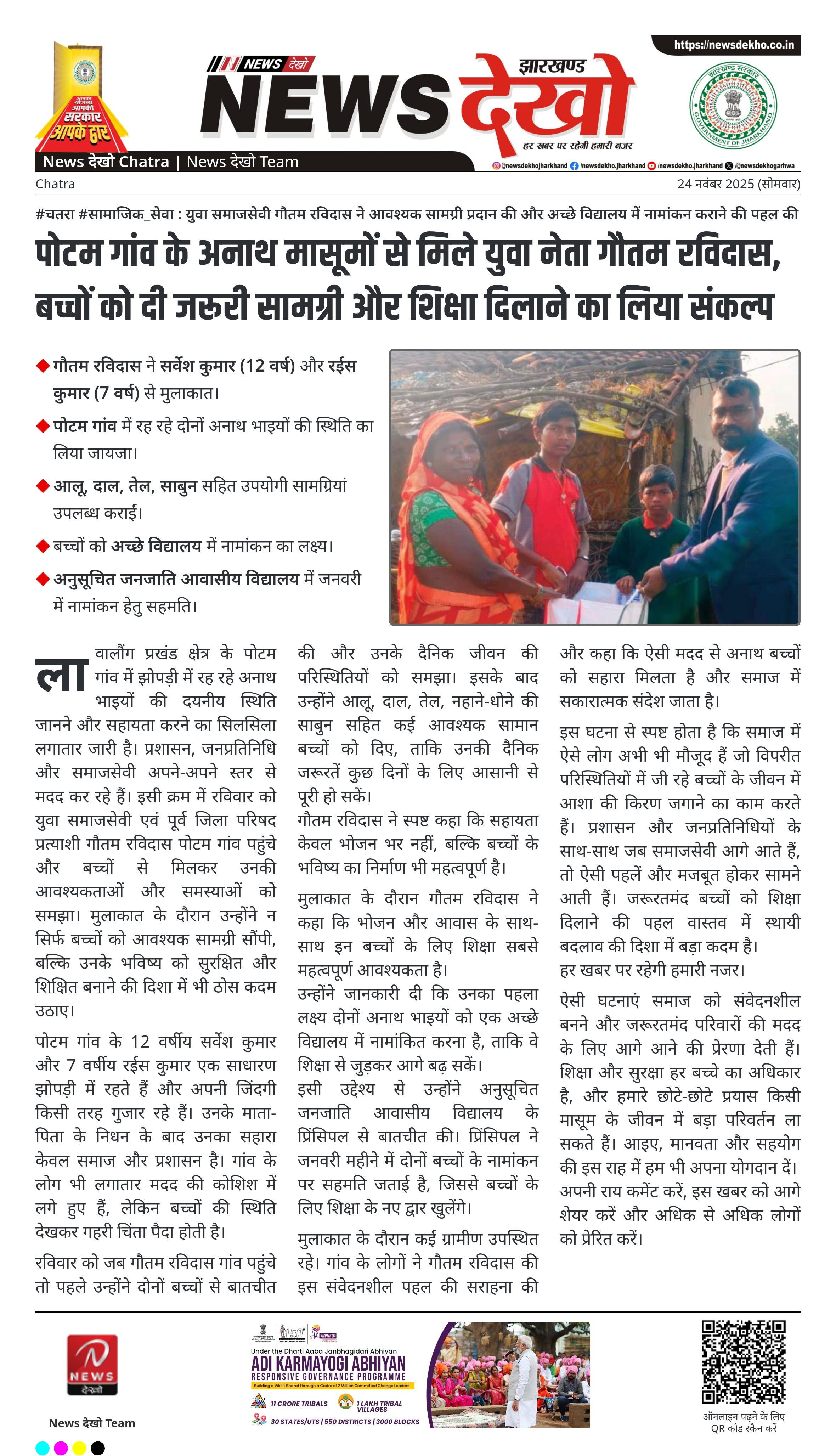 #चतरा #सामाजिक_सेवा : युवा समाजसेवी गौतम रविदास ने आवश्यक सामग्री प्रदान की और अच्छे विद्यालय में नामांकन कराने की पहल की।