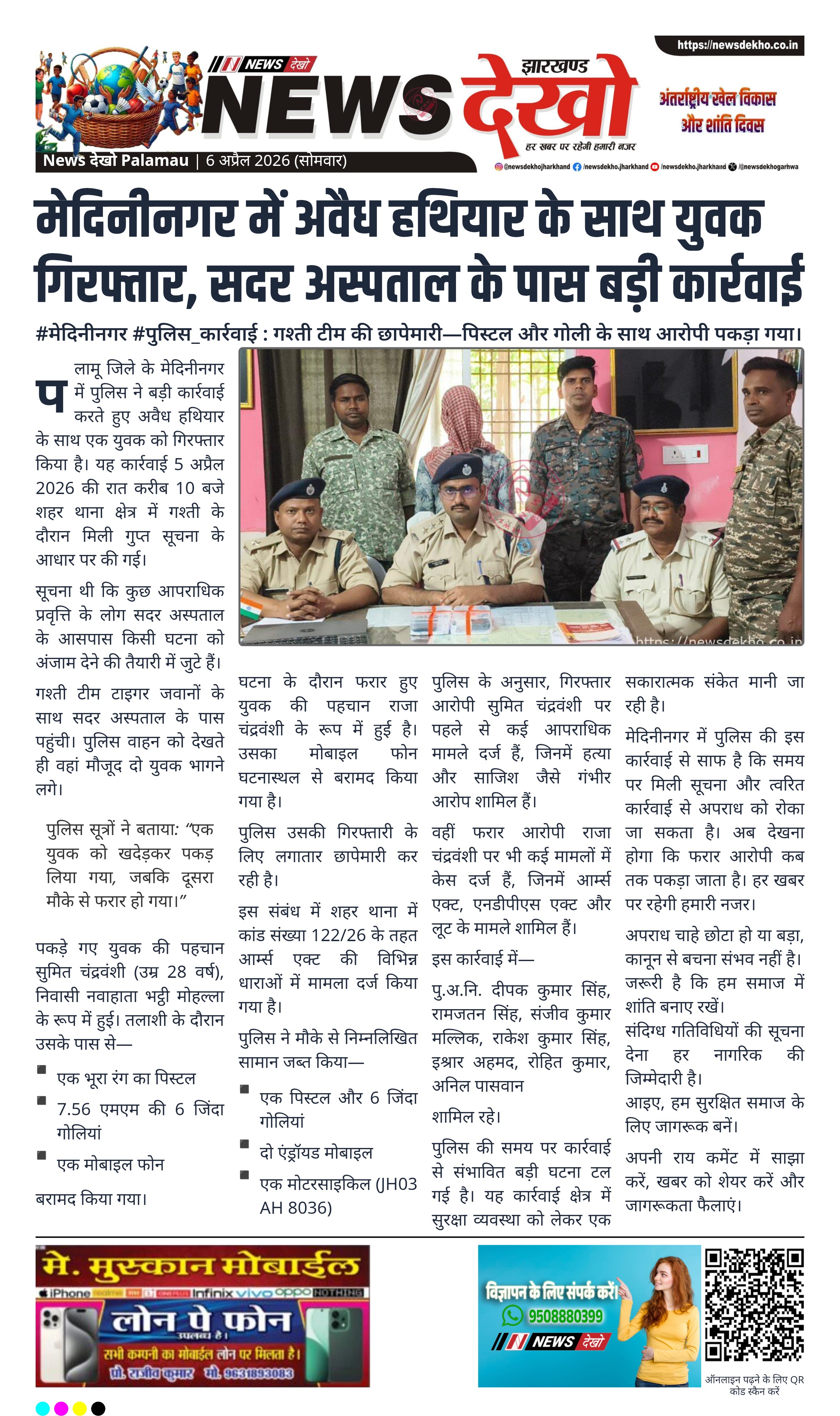 - सुमित चंद्रवंशी अवैध हथियार के साथ गिरफ्तार।