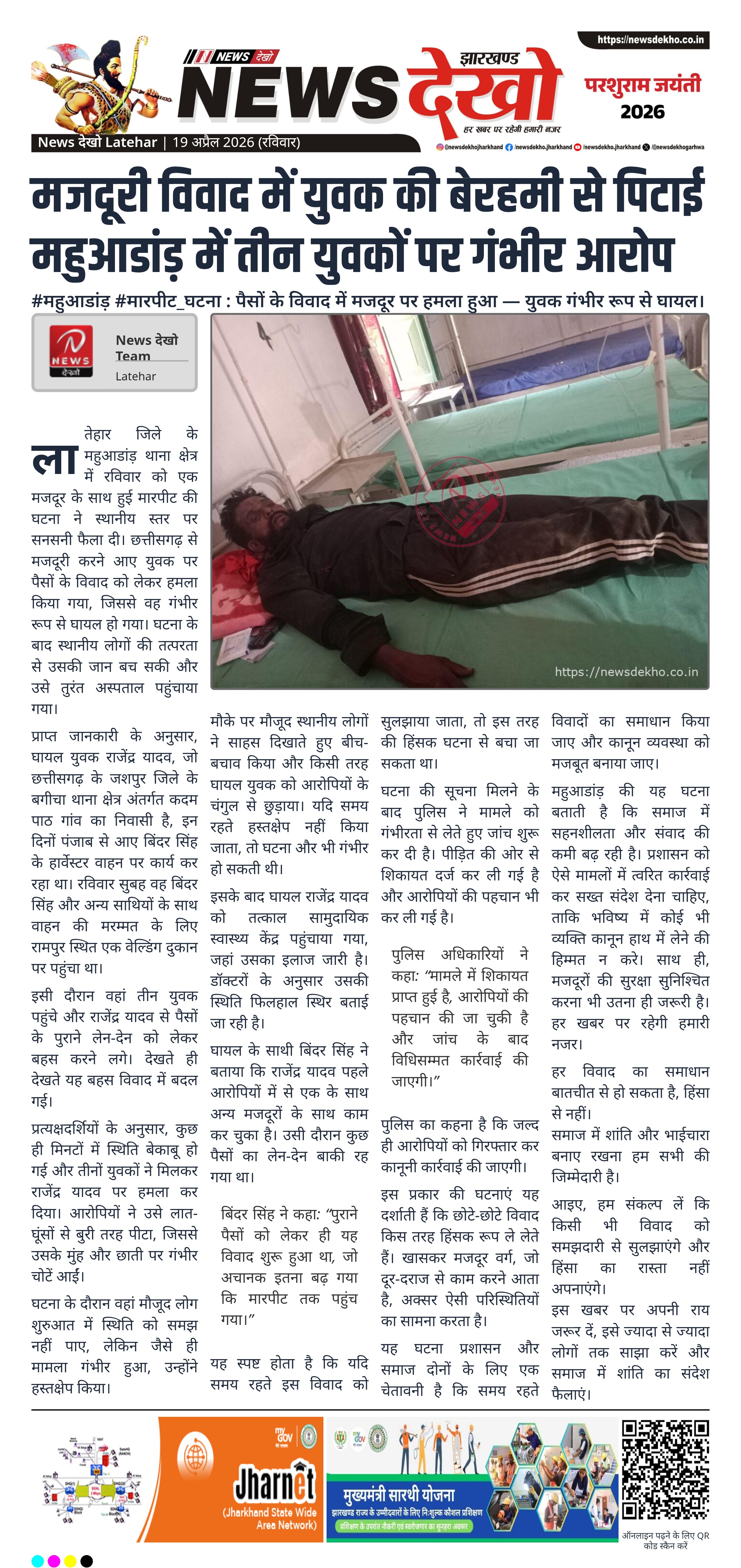 #महुआडांड़ #मारपीट_घटना : पैसों के विवाद में मजदूर पर हमला हुआ — युवक गंभीर रूप से घायल।