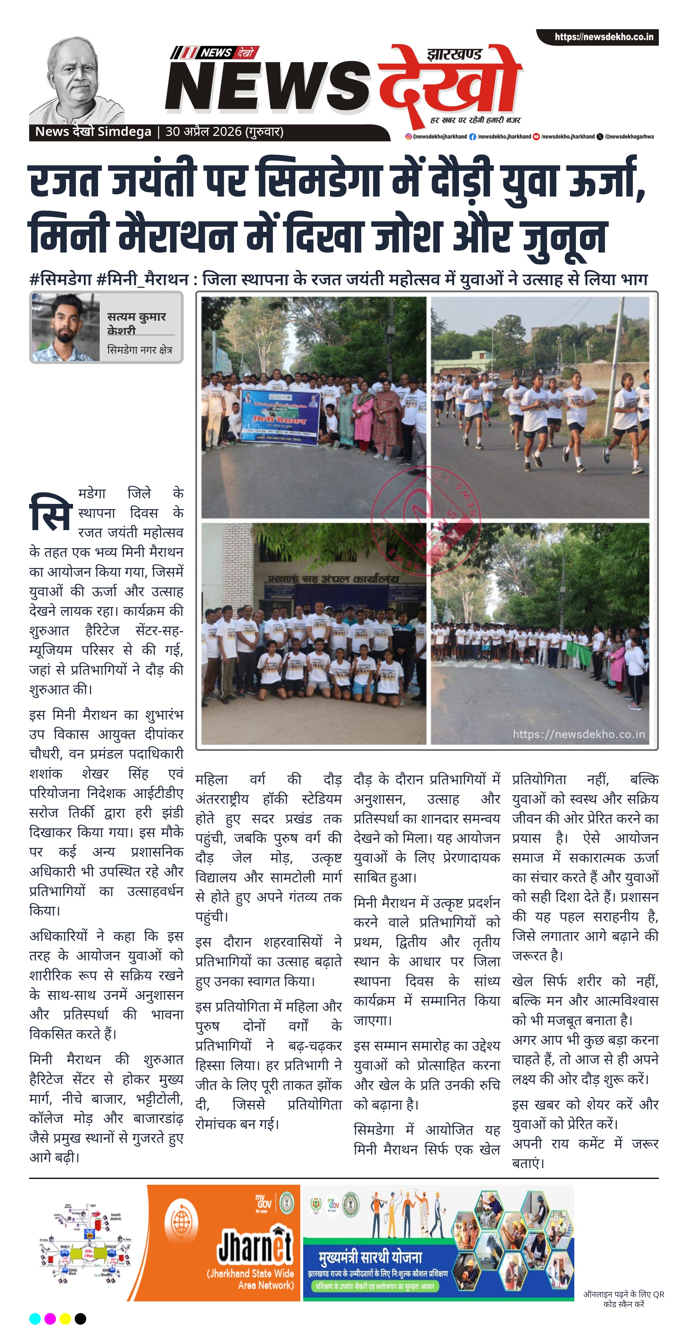 - सिमडेगा में रजत जयंती महोत्सव पर मिनी मैराथन का आयोजन।