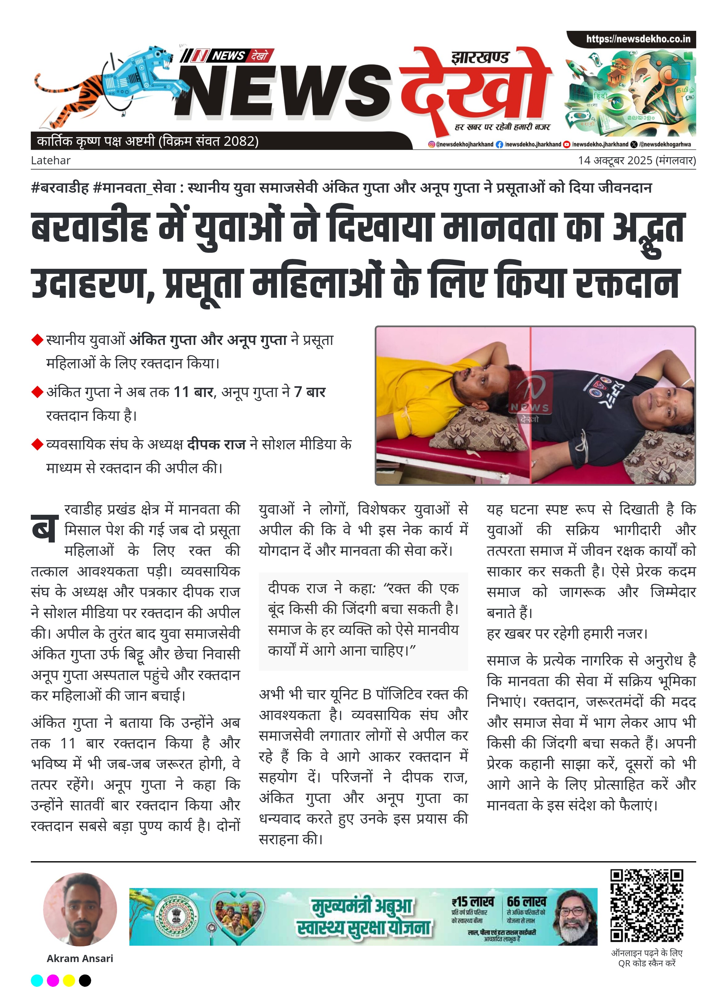 • अंकित गुप्ता ने अब तक 11 बार, अनूप गुप्ता ने 7 बार रक्तदान किया है।